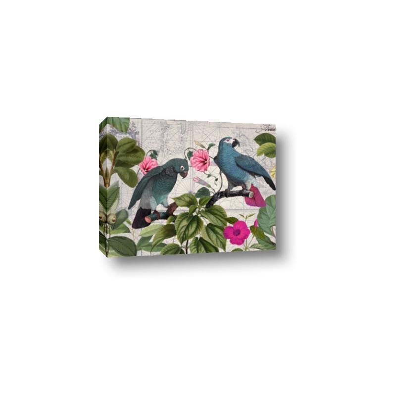 Blue Nostalgic Tropical Parrot Birds - Wall Art