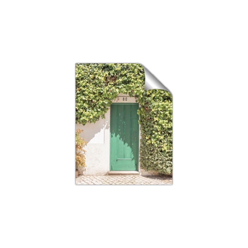 Green Door with Lush Leaves - Wall Art