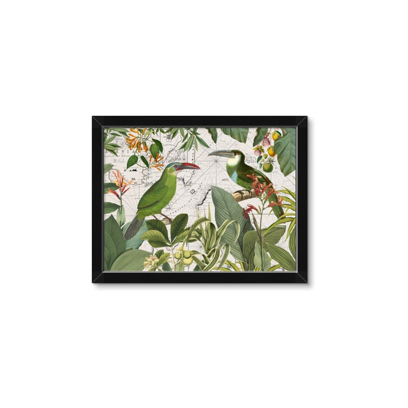 Green Nostalgic Tropical Birds - Wall Art